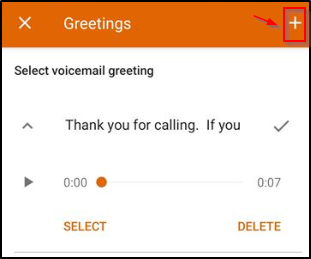 - To add a New Greeting, click the Add + plus icon in the top right. You will then be able to name and record a new Greeting.